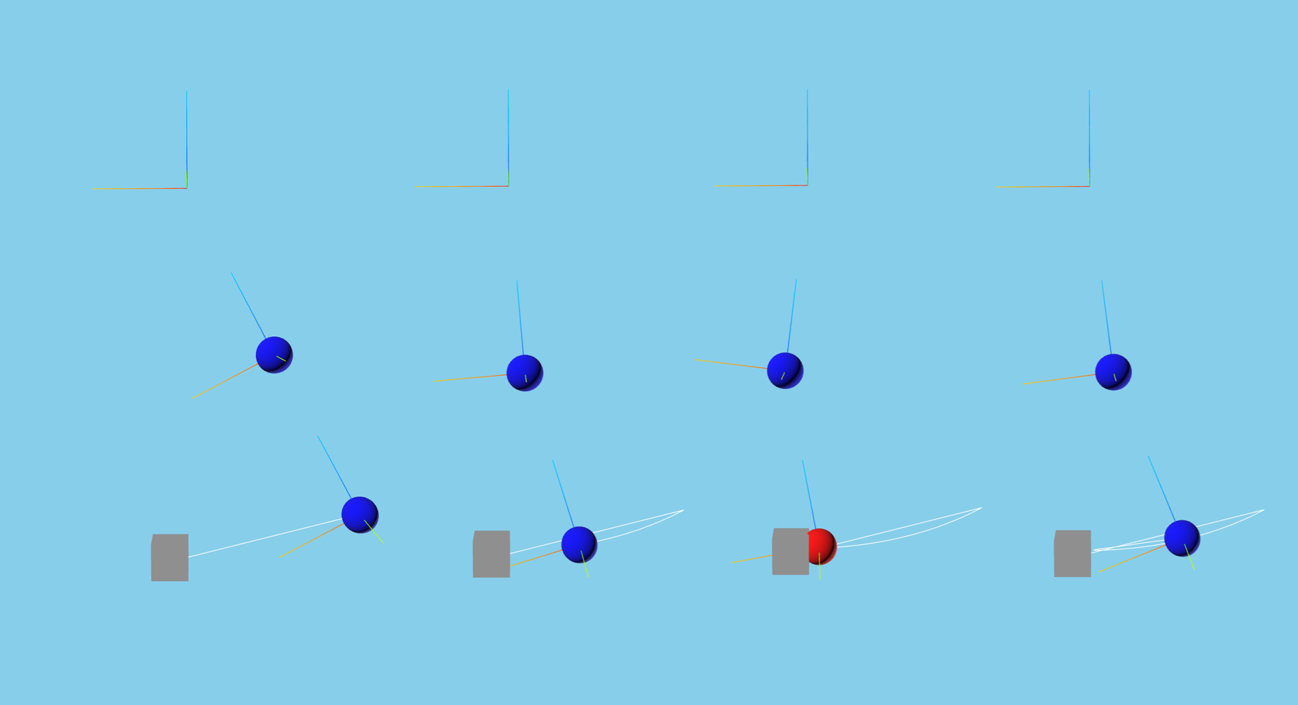 Now we register a callback function that is run at the end of each timestep. It directly queries for if body 2 is in collision with the obstacle, and turns body 2 red if so.
