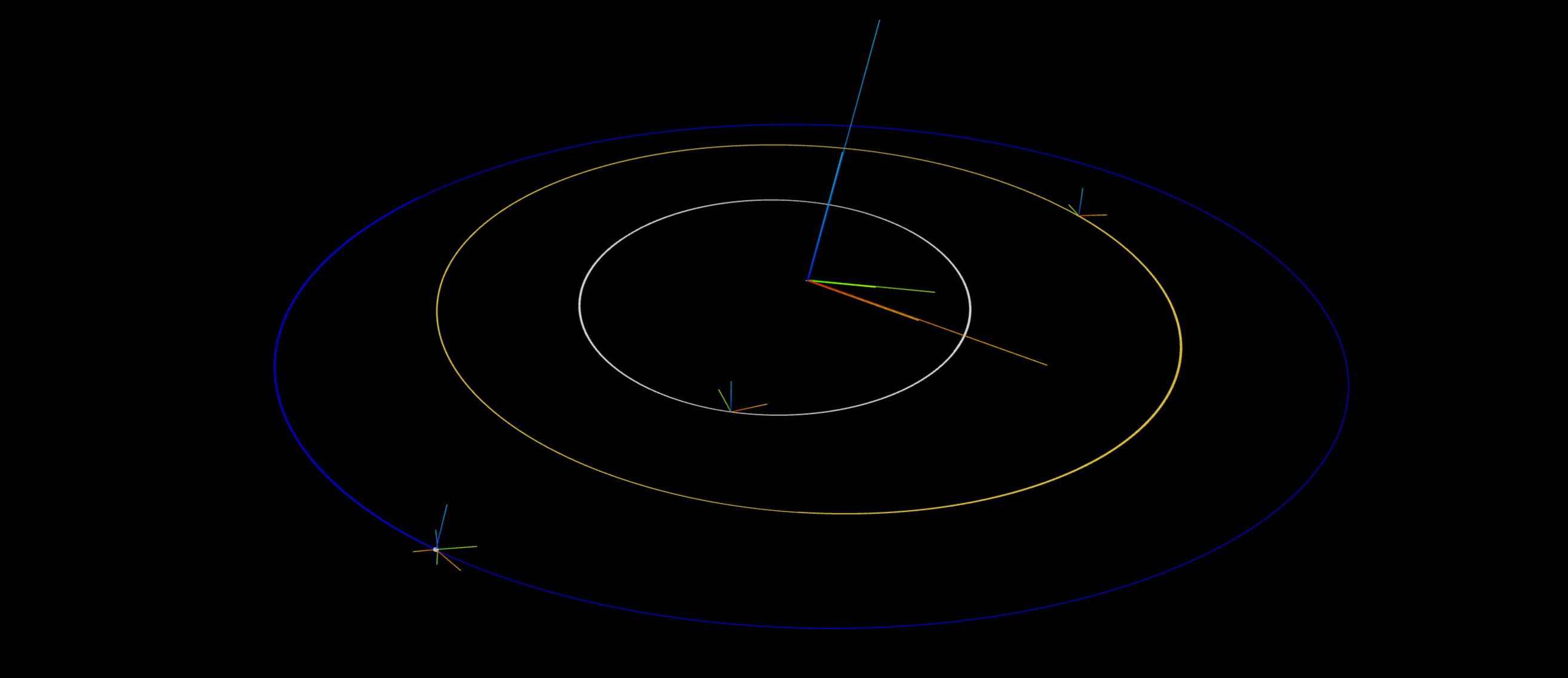 We also create Karana.Frame.SpiceFrame2Frame’s to connect the frames to one another. This is necessary in order tie all the ephemeris data together and query/visualize the planetary bodies’ orbits.